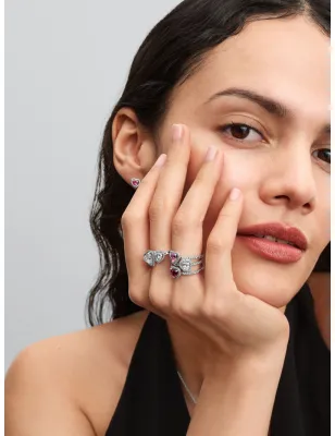 Indossa un tocco di colore con l'Anello Cuore in Rilievo Rosa. Realizzato in Argento Sterling 925, presenta una pietra rosa in rilievo a forma di cuore, circondata da pavé. Simbolo di amore e gratitudine, aggiunge luminosità a ogni look.