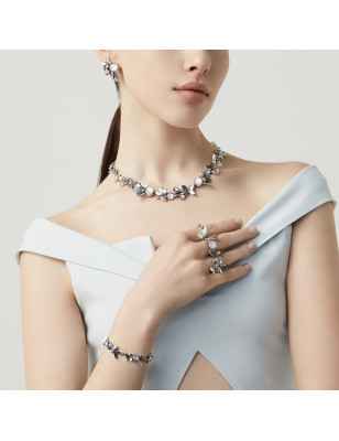 Argento 925 e madreperla rosa doppiata con quarzo