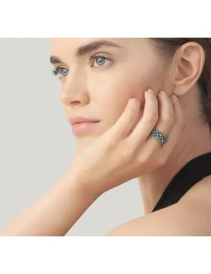 L'anello Petit Perlage è un capolavoro che celebra l’arte della fusione a cera persa. La sua raffinata lavorazione artigianale si distingue per il pavé di delicate sferette in argento brunito, finemente diamantate, che donano un gioco di luce unico e sofisticato. Realizzato a mano in azienda.