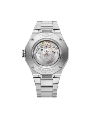 Baume & Mercier Riviera 10829 è dedicato ai momenti personali dell'uomo che punta sull'affidabilità e sulla buona fattura, sul patrimonio di una Maison la cui eccellenza orologiera si perpetua da quasi 200 anni. Il quadrante bianco e nero in stile anni '50 conquista per il suo irresistibile brio, mentre il sistema di intercambiabilità senza attrezzi del bracciale permette personalizzazione immediata. Perfetto per l'uomo moderno che accetta la sfida del tempo e desidera un orologio che rifletta la sua personalità sicura e determinata in ogni momento della sua vita.