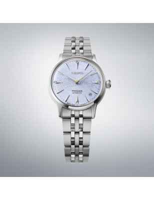 Design cocktail e ispirazione: Questo design è ispirato al cocktail "Frozen Skydiving", un mix ghiacciato di rum, blue curaçao e succo di lime creato dal capo barman dello Star Bar, Hisashi Kishi - Campione mondiale dell'International Bar Association e Contemporary Master Craftsman del governo giapponese. Il modello Frozen Skydiving presenta una tonalità azzurra chiara ispirata a questo cocktail che mescola rum, blue curaçao e succo di lime. Movimento e prestazioni: Il segnatempo è alimentato dal calibro automatico interno 4R35, che fornisce una riserva di carica di 40 ore e una precisione di +45/-35 secondi al giorno. Il movimento automatico a 23 rubini batte a una frequenza di 21.600 vibrazioni all'ora, con riserva di carica di circa 41 ore e capacità di carica manuale. Design e materiali: Compatto con soli 34mm e caratterizzato da quattro indici diamante, questo segnatempo presenta un quadrante azzurro texturizzato che ricorda il ghiaccio tritato. È dotato di un bracciale multi-link conico e con finitura a specchio. Ogni orologio presenta una cassa compatta da 34mm, ornata con quattro indici diamante e un quadrante texturizzato che imita l'aspetto del ghiaccio tritato, abbinati a bracciali multi-link conici e lucidati a specchio. Specifiche tecniche: Codice SRPL61J1 Movimento Automatico Seiko 4R35 con carica manuale Riserva di carica 41 ore Precisione +45/-35 secondi al giorno Cassa Acciaio inossidabile 34mm, spessore 10,7mm Lug-to-lug 40,4mm, larghezza anse 17mm Vetro Box-shaped Hardlex Quadrante Azzurro texturizzato effetto ghiaccio tritato Indici 4 diamanti alle posizioni 12-3-6-9 Data A ore 3 Bracciale Acciaio multi-link conico lucidato, lunghezza 198mm Chiusura Deployante con rilascio a pulsante Impermeabilità 50 metri (5 bar) Peso 87 grammi Resistenza magnetica 4.800 A/m Origine Made in Japan Per chi è pensato: Perfetto per donne che apprezzano l'eleganza giapponese e la cultura dei cocktail di Tokyo, con la dimensione compatta da 34mm ideale per polsi delicati. Ideale per chi cerca un orologio automatico con dettagli luxury come i diamanti ma dal prezzo accessibile. Un investimento per chi vuole un pezzo unico che racconta la storia della mixology giapponese e della maestria orologiera Seiko in un design fresco e primaverile.