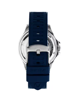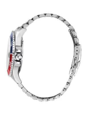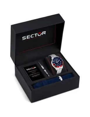 Sector 230 R3223161018 automatico uomo collezione 230 cassa acciaio 43mm quadrante blu con lunetta bicolore blu-rossa distintiva. Movimento automatico, doppio cinturino bracciale acciaio deployante più silicone blu extra, impermeabilità 10 ATM fondello vista.