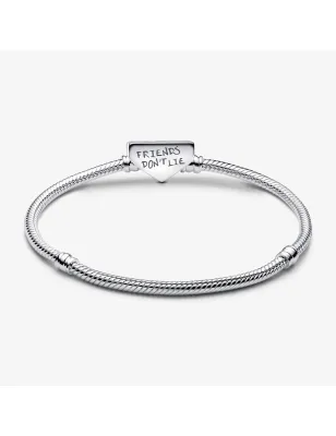 Pandora Stranger Things Bracciale con Logo 593572C01-20: bracciale collezione Netflix x Pandora in argento sterling 925 con maglia snake decorato da chiusura con logo Stranger Things dipinto in smalto rosso su un lato e incisione "FRIENDS DON'T LIE" (GLI AMICI NON MENTONO) sull'altro lato. Compatibile con Pandora Moments per personalizzare con massimo 16-18 charm e portare con te simboli e personaggi preferiti della serie. Misura 20cm.