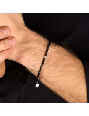 Bracciale uomo in acciaio con pietre di onice nero e centrale di cristalli bianchi della collezione Terra.