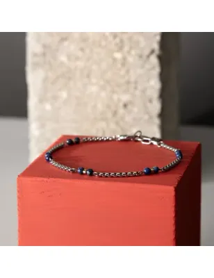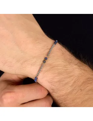 Bracciale uomo in acciaio con pietre di lapislazzuli blu della collezione Terra.