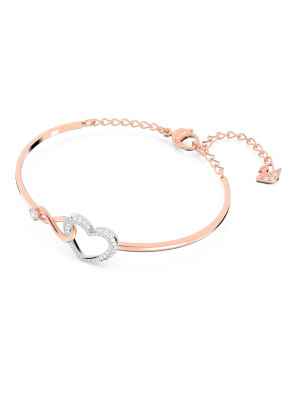 Un simbolo di amore infinito: Questo elegante bangle Swarovski mette in risalto i simboli di amore ed eternità intrecciati tra loro. Decorato con cristalli Swarovski bianchi, il motivo a forma di cuore completa alla perfezione il simbolo dell’infinito, per un look davvero romantico. Un mix di placcature del metallo bilancia alla perfezione tonalità calde e fredde, per completare il design. È una meravigliosa idea regalo (e una promessa) per una persona speciale.