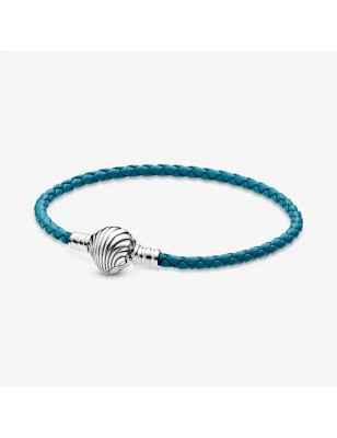 Aggiungi un tocco di colore vivace ai tuoi outfit con questo bracciale in pelle intrecciato turchese con chiusura a conchiglia Pandora Moments. Caratterizzato da un intreccio in pelle turchese e completato da una chiusura a forma di conchiglia in Argento, si ispira ai tesori delle profondità marine e alle funi colorate usate sulle barche a vela. Indossalo da solo o abbinalo ad altri charm associati all’oceano della collezione Pandora Moments.