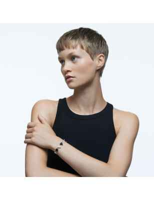 Bracciale è realizzato da una serie uniforme di cristalli a tassello dal taglio triangle. Presenta una raffinata montatura placcata in rodio e la chiusura a scomparsa, cristalli audaci, neri e bianchi che catturano la luce. Indossalo da solo o abbinalo a gioielli dalle tonalità vivaci della linea Millenia. Parte della linea Millenia, è firmato dalla Direttrice creativa Giovanna Engelbert per la Collection II.