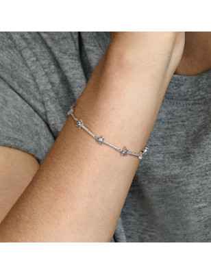 Lasciati ispirare dal nostro mondo pieno di magia e di sogni che evoca i misteri del cielo notturno e la lucentezza delle stelle. Il bracciale, decorato da una serie di stelle sfavillanti dalle forme irregolari realizzate in Argento Sterling 925 con pietre di zirconia cubica rotonde incastonate a pavé, suggerisce una vita che oltrepassa i tuoi sogni più audaci, con ogni stella che simboleggia un evento fondamentale del passato o un traguardo da raggiungere in futuro.