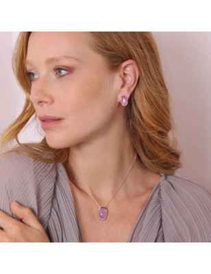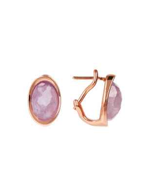 Orecchini a lobo Bronzallure realizzati in lega Golden Rosé, placcata oro rosa 18kt, con pietra naturale della forma ovale e superficie sfaccettata.