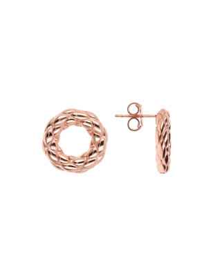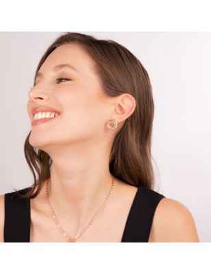 Orecchini a lobo rotondi Bronzallure realizzati su base Golden Rosé, placcati oro rosa 18kt con design matelassé. Chiusura a perno e farfalla.