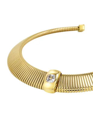 La collezione Stylize rappresenta l’interpretazione di Breil dell’alta gioielleria. La collana è realizzata in tubogas in acciaio color gold, con una costruzione a elemento armonico che la rende flessibile e confortevole da indossare. Al centro, un cubic zirconia maxi-bianco aggiunge un tocco di luce ed eleganza all’intero design. Il suo stile, dal gusto retrò, la rende un accessorio capace di impreziosire anche i look più essenziali, reinterpretando un classico senza tempo in chiave contemporanea.