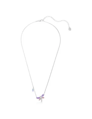 Un simbolo di trasformazione, l’evocativo pendente a forma di libellula si indossa su una delicata catena e presenta un motivo centrale placcato rodio e impreziosito da un pavé di Swarovski Zirconia trasparenti. Una singola Crystal Pearl Swarovski è posizionata sulla testa, mentre le ali dai colori pastello rivelano sfumature rosa e viola, abbinandosi splendidamente ad altri gioielli a forma di libellula della stessa famiglia.