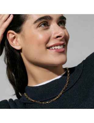Collana in acciaio dorato con maglia marina; fatti trasportare nell'epoca della musica Pop con la nuova collezione Ecclettica. Con la sua luminosità e dalle linee contemporanee la collezione riprende in pieno lo stile anni 80.