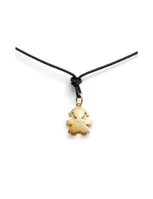 Ciondolo con sagoma di bimba in oro giallo 18kt con cordino ecologico nero collezione I Tesorini Le Bebé. Lunghezza regolabile.