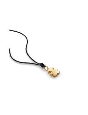 Ciondolo sagoma bimba in oro giallo 18kt con cordino ecologico nero lunghezza regolabile.