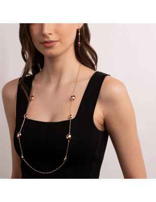 Collana lunga Bronzallure realizzata in lega Golden Rosé, placcata oro rosa 18kt, con catena rolo e pepite lucide in Golden Rosé.