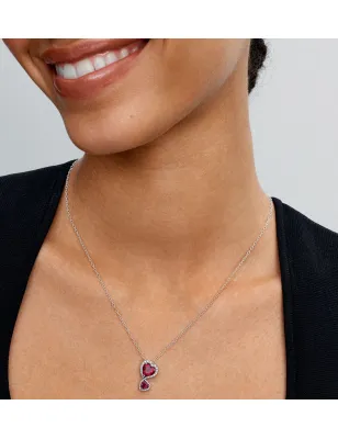 Amore eterno scolpito in pietre luminose. Questa collana in Argento Sterling 925 presenta due cuori, ciascuno formato da un cristallo rosso creato dall'uomo, circondati da un profilo impreziosito da luminose pietre di zirconia cubica incolore. Regolabile su tre lunghezze, si abbina perfettamente a qualsiasi look.
