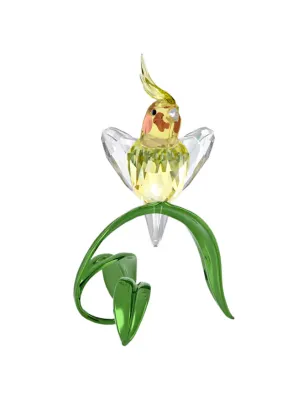 Pronta a spiccare il volo, la vivace calopsitta è realizzata con 347 sfaccettature, che raffigurano il volatile con le ali pronte a spiegarsi. Il design presenta il caratteristico colore giallo della calopsitta e foglie lucide realizzate in metallo laccato verde.