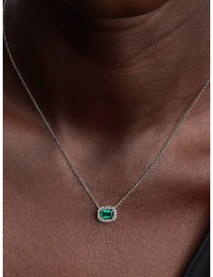 Immergiti nell’incanto del verde smeraldo. Decorata da una pietra centrale verde circondata da pavé su una catena in Argento Sterling 925, questa collana scenografica si ispira ai tesori nascosti nei portagioie di un tempo.