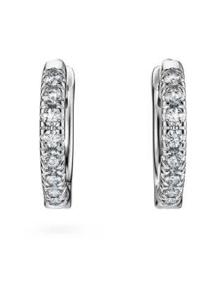 Frizzanti orecchini a buco, elevano il classico stile a cerchio ad un nuovo livello di lusso. I cerchi in oro bianco da 18 K emanano una splendida lucentezza e presentano un semicerchio di diamanti rotondi creati in laboratorio, di un totale di 0,1 carati. Certificato IGI (International Gemological Institute), questo gioiello è parte della collezione Eternity.