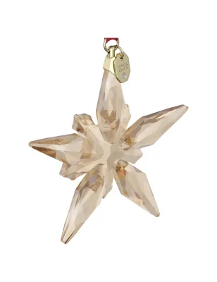 Accogli uno dei simboli più tradizionali delle feste con questa Annual Edition Decorazione Swarovski. Sospeso su un nastro gros-grain rosso con dettagli in tonalità oro champagne, il design a forma di stella è magistralmente tagliato con 190 sfaccettature che catturano i raggi di luce, incarnando alla perfezione la complessa semplicità e la maestria tecnica di Swarovski.