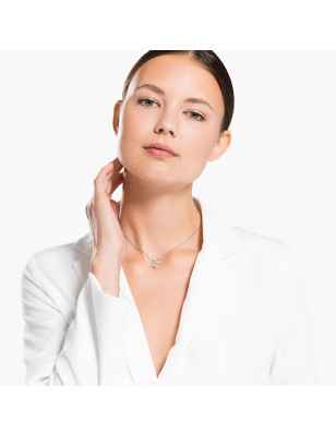 Questo pendente Swarovski è ispirato al segno zodiacale dei Gemelli. Raffigura il simbolo stilizzato di questo segno in scintillante pavé di Clear Crystal, incentrato attorno a una pietra bianca, a rievocare le stelle dello Zodiaco. La catenina abbinata presenta una chiusura con barra a T decorata da una moneta con un sole su un lato e simboli degli elementi sul retro. Indossa la chiusura davanti o dietro, con il motivo dello Zodiaco o senza, per creare tanti look differenti.