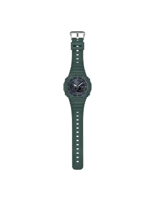Casio G-Shock GA-B2100-3A CasiOak verde militare con aspetto retro bisel ottagonale e Smartphone Link e Tough Solar capabilities con Bluetooth per pairing smartphone e Tough Solar charging functionality. Doppia illuminazione LED, ora mondiale 300 città, cronometro centesimi secondo, impermeabile 200m, peso 52g.