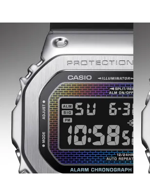 Casio G-Shock GM-5600RW-1 G-Steel Rainbow Brick Wall Series - "Un altro mattone nel muro" con arcobaleno colori completo. Vetro orologio con motivo mattoni originale primo G-SHOCK colori brillanti, deposizione vapore arcobaleno tonalità iridescenti che cambiano con luce, cassa acciaio resina, peso 73g.