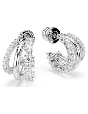 Orecchini a Cerchio Hyperbola, Mini, Bianchi, Placcato rodio Swarovski 5737110