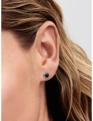 Orecchini Cuore in Rilievo Nero Pandora 298427C03
