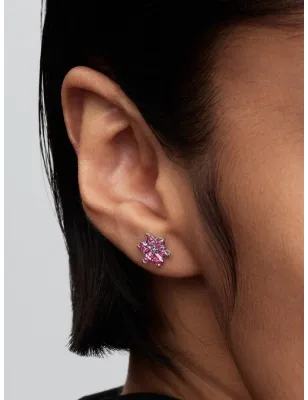 Bellezza che sboccia in ogni dettaglio. Questi orecchini a lobo in Argento Sterling 925 presentano pietre rosa con taglio a goccia e marquise che formano petali curvi. Un tributo colorato alla bellezza della natura.