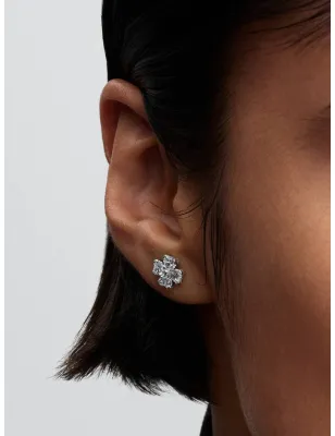 Sii unica. Questi orecchini a lobo in Argento Sterling 925 brillano grazie a pietre a cuore che formano un quadrifoglio. Una celebrazione della bellezza della natura e dei simboli dell'amore e della buona sorte.