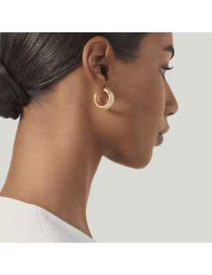 Piccoli e preziosi, questi orecchini a cerchio in maglia tubogas rigida d’argento dorato esprimono una raffinata essenzialità. Le estremità lasciate lisce donano leggerezza e perfetto equilibrio alle forme, esaltandone la purezza del design. Contemporanei nella loro elegante semplicità e nelle dimensioni contenute, sono pensati per illuminare il volto con discrezione e carattere.