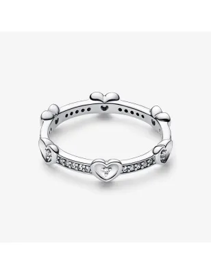 Amore eterno. Rifinito a mano e realizzato in Argento, il nuovo anello Cuori Splendenti è caratterizzato da una fila di cuori in rilievo, ognuno decorato da una pietra di zirconia cubica incolore con taglio brillante rotondo e collegato da un pavé scintillante. Per il tuo solo e unico amore.