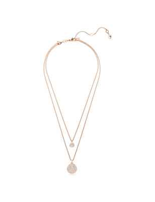 Scintillante pendente stratificato ideale per far risplendere il tuo stile. Design placcato color oro rosa presenta due catene, ciascuna con un motivo a cupola a forma di meteora, impreziosito da un pavé a neve di cristalli Cry rotondi di diverse dimensioni. Per un tocco di versatilità, il pendente può essere invertito, rivelando un alone di cristalli attorno al motivo più grande ed un singolo cristallo al centro del motivo più piccolo.