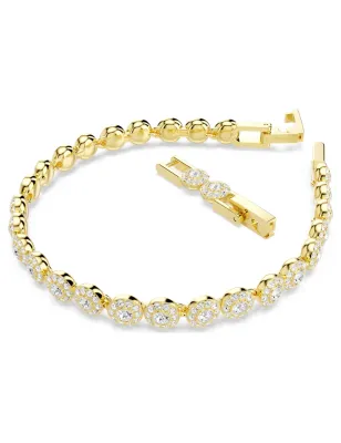 Perfetto per armonizzare il tuo stile all’insegna del lusso, questo set placcato in tonalità oro è nato per brillare. Ogni elemento è caratterizzato da una linea completa di cristalli taglio Round, ognuno dei quali è incorniciato da un alone di pavé di cristallo Cry. Questo include i raffinati motivi che impreziosiscono sia la collana che il bracciale. I fermagli di sicurezza garantiscono una chiusura invisibile, mentre gli extender aggiuntivi consentono di regolare i gioielli sia in termini di vestibilità che di lunghezza. Indossa questi splendidi accessori insieme per sfoggiare un look glamour da capo a piedi.