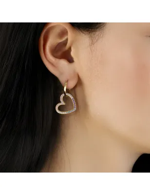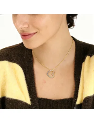 Set di collana e orecchini in ottone dorato. Questa parure di gioielli si può indossare in tanti modi diversi! Ciascuno due charm a cuore con zirconi multicolor, infatti, è intercambiabile e si usa sia come ciondolo della collana che come pendente degli orecchini a cerchio. Un'idea regalo perfetta da condividere con un'amica del cuore, una sorella, la mamma, la figlia... Un modo per dire "Ti voglio bene e sono sempre con te".