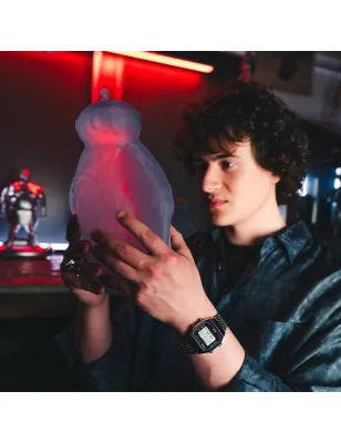 Casio Vintage Collection ABL-100WE-1AEF è un orologio digitale step tracker con sensore integrato che rileva movimenti del corpo e conta automaticamente i passi permettendo di controllare facilmente il numero di passi compiuti in un giorno sullo schermo LCD con visualizzazione avanzamento verso obiettivo passi impostabile da 1.000 a 50.000 passi con incrementi di 1.000 passi più promemoria passi che segnala quando conteggio è troppo basso tramite display e segnale acustico più grafico conteggio passi orari ultime 7 ore su grafico a 6 livelli. L'associazione smartphone tramite Bluetooth consente correzione automatica ora e semplifica configurazione varie funzioni dall'app CASIO WATCHES trasferendo conteggi passi e altri dati monitorati sull'orologio per visualizzarli sul telefono utilizzando dati Life Log per gestire proprio stato salute ogni giorno con funzioni ora e posizione trova telefono e impostazione semplice ora internazionale circa 300 città. Questo segnatempo digitale classico unisex presenta cassa in resina cromata da 37,9mm di larghezza per 41,6mm di altezza e spessore ultracompatto di 8,2mm per profilo sottile vintage elegante. Il movimento al quarzo digitale garantisce precisione di ±15 secondi al mese senza funzione Mobile Link. Il display LCD digitale presenta quadrante nero con cornice blu elettrica e scritte STEP TRACKER ILLUMINATOR blu WATER RESIST rosse e Bluetooth oro creando appeal vintage tecnologico contemporaneo con barra grafica contapassi superiore che mostra avanzamento obiettivo giornaliero visivamente immediato. Il cronografo digitale a centesimi di secondo offre capacità di misurazione fino a 23 ore 59 minuti con modalità tempo trascorso tempo sul giro tempo parziale più capacità memoria fino a 200 registrazioni con anno avvio misurazione mese data ora minuto tempi parziali sul giro per analisi prestazioni dettagliata. Il timer conto alla rovescia offre intervallo fino a 60 minuti con incrementi di 1 secondo. Le 5 funzioni alarm giornaliere permettono impostazione promemoria multipli più segnale orario ogni ora. La retroilluminazione LED ambra illumina display con durata selezionabile 1,5 secondi o 3 secondi più luminescenza per leggibilità notturna perfetta. Il bracciale in acciaio inossidabile con maglie piatte multiple presenta sistema autoregolabile con chiusura regolabile da 145mm a 205mm che permette adattamento perfetto al polso con struttura piatta per vestibilità confortevole superiore. Impermeabilità water resist permette resistenza a schizzi pioggia per uso quotidiano. Peso di 60g per presenza al polso equilibrata. Calendario automatico completo fino anno 2099. Funzione risparmio energetico attivabile più avviso batteria scarica. Design classico unisex moda vintage con funzionalità moderna step tracker Bluetooth smartphone app per stile di vita attento alla salute con tecnologia all'avanguardia nascosta sotto look vintage elegante. Ideale per chi cerca orologio digitale Casio vintage con step tracker contapassi automatico Bluetooth smartphone app CASIO WATCHES cronografo memoria 200 registrazioni timer 5 alarm per stile di vita attento salute benessere fitness quotidiano con ottimo rapporto qualità-prezzo, perfetto per uso quotidiano sport wellness tracking passi obiettivi salute nostaglia vintage anni Ottanta tecnologia moderna Bluetooth app gestione dati Life Log bracciale acciaio maglie piatte confortevole, ottimo regalo per appassionati fitness wellness salute tecnologia Bluetooth smartphone app collezionisti orologi digitali Casio storici con funzioni smart contemporanee step tracker innovativo vintage elegante. Disponibile presso De Marchi Gianotti rivenditore ufficiale Casio per Valle d'Aosta, con garanzia convenzionale Casio 24 mesi.