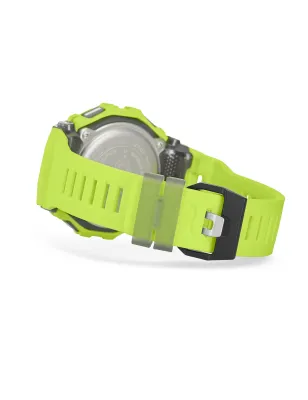 Collezione G-SQUAD Serie GBD-200 digitale running giallo lime con dettagli rossi LCD MIP, accelerometro GPS smartphone, cronografo, timer intervallo, contapassi calorie, Bluetooth app CASIO WATCHES, luce LED Super Illuminator, resistente urti 20 bar, cassa quadrata sottile 45mm, compatibile Strava.