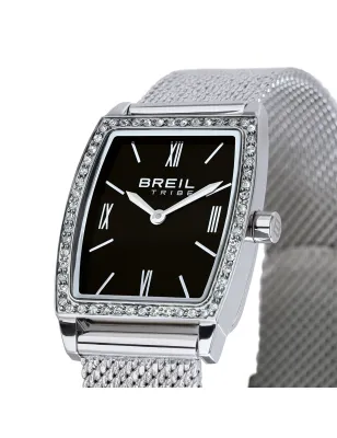 L'orologio da donna Althea è glam ed elegante. La cassa di forma rettangolare e bombata in acciaio presenta una lunetta impreziosita da cristalli, che si abbina perfettamente al quadrante nero con dettagli color silver: un abbinamento femminile e di tendenza. Il bracciale in maglia mesh, con finitura diamantata, avvolge il polso con eleganza e aggiunge un tocco luminoso.