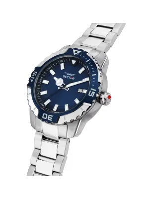 Sector Legend R3253135003 tempo e data uomo acciaio inossidabile 42mm con spessore 12.25mm colore cassa silver. Vetro minerale resistente, bracciale acciaio silver con fibbia diver con pulsanti e blocco sicurezza, movimento quarzo preciso, impermeabile 100m, garanzia ufficiale Sector.