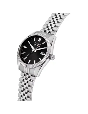 Sector 240 R3253240015 tempo e data uomo acciaio inossidabile 41mm con spessore 10.70mm finitura lucida. Colore cassa silver elegante, vetro minerale resistente, bracciale acciaio silver con fibbia diver con blocco sicurezza, movimento quarzo preciso, impermeabile 50m, garanzia ufficiale Sector.