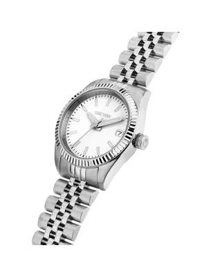 Sector 240 R3253240514 tempo e data donna quarzo cassa acciaio 32mm spessore 9.15mm finitura lucida satinata. Quadrante bianco, lunetta zigrinata, bracciale acciaio, chiusura deployante con blocco sicurezza, movimento quarzo, impermeabile 50m, garanzia Sector.