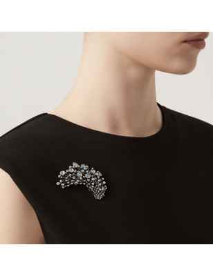 Spilla in Argento e quarzi mystic nata dall'ispirazione di Perlage, la spilla Firewoks è abbellita da alcuni "mystic cristal" dal colore cangiante. Il gioiello, fuso a cera persa in argento brunito, è realizzato completamente a mano in azienda.