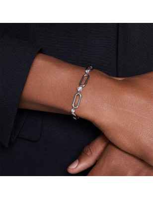Questo bracciale placcato rodio è stato creato all’insegna del lusso per enfatizzare lo styling tempestato di stelle della famiglia Constella. Dotato di una chiusura con gancio a moschettone, questo gioiello presenta una catena di ispirazione industriale, con Swarovski Zirconia rotondi montati a griffe e posizionati tra le maglie centrali.