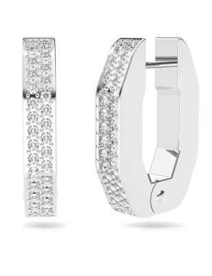 Inno alla sofisticata tecnica pavé di Swarovski, questi piccoli orecchini a cerchio taglio octagon, dai dettagli intricati e dalla struttura audace, esprimono modernità. Delicati cristalli bianchi posizionati su montature placcate rodio evidenziano un design di ispirazione industriale e si indossano da soli oppure sovrapposti sull’orecchio insieme ad altri pezzi della famiglia Dextera.