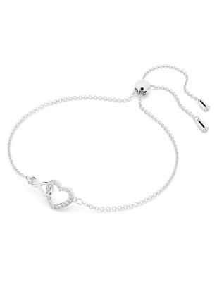 Questo bracciale rodiato di Swarovski è un’espressione di amore eterno. Presenta un duplice elemento raffigurante un cuore e un simbolo dell’infinito intrecciati. Un’unica, splendente pietra adorna il simbolo dell’infinito, aggiungendo un tocco di brillantezza al modello.