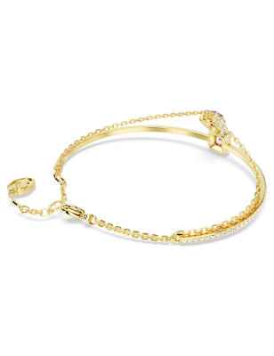 Bracciale doppio è realizzato all’insegna del romanticismo. Il design placcato color oro presenta una fascia rigida con pavé di cristalli Cry e una pietra centrale quadrata in Swarovski Zirconia trasparente, mentre la catenina è anch’essa impreziosita da una pietra centrale a forma di cuore in Swarovski Zirconia rosso e completata da cristalli Cry quadrati attorno ai bordi. Completato da una chiusura con gancio a moschettone, questo bracciale è l’idea regalo perfetta per una persona che ami.