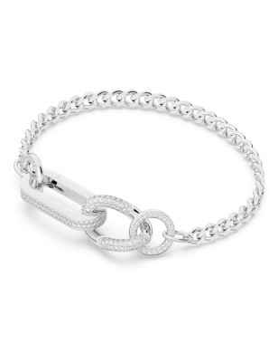 Dettagli sofisticati incontrano una costruzione audace in questo moderno bracciale della famiglia Dextera. Impreziosito dalla nostra celebre tecnica pavé, questo bracciale presenta file di cristalli trasparenti incastonati in una montatura placcata in rodio. Indossalo da solo o abbinalo ad altri gioielli, a seconda del tuo umore e dell'outfit.